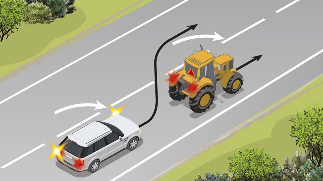 Втім, остаточне рішення про можливість здійснення маневру водій завжди має ухвалювати з урахуванням низки обставин, зокрема зі співвідношенням швидкостей руху свого авто та трактора. Адже від цього залежить протяжність відрізка, на якому можна здійснити обгін.