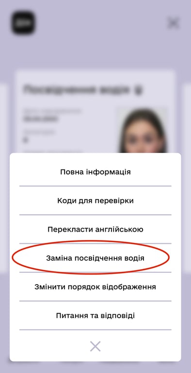 - Заходимо в застосунок "Дія", знаходимо водійське посвідчення та натискаємо на 3 крапочки в правому кутку.